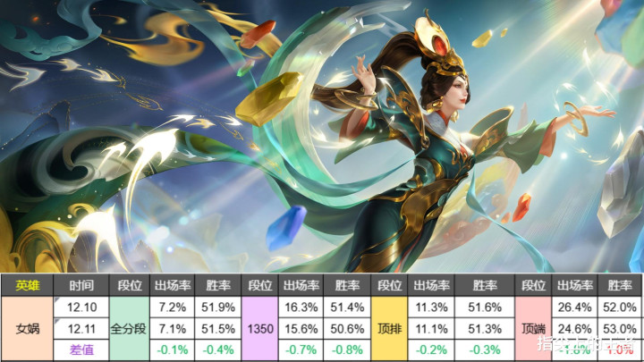 而女娲的胜率变化,还跟当前版本的主流出装有关系,以前是回响之杖接博学者之怒,直接堆纯法强,力求一发通天炮干倒一片,而现在的主流出装都会出痛苦面具加日暮之流,装备的效果伤害占了不少的比重。